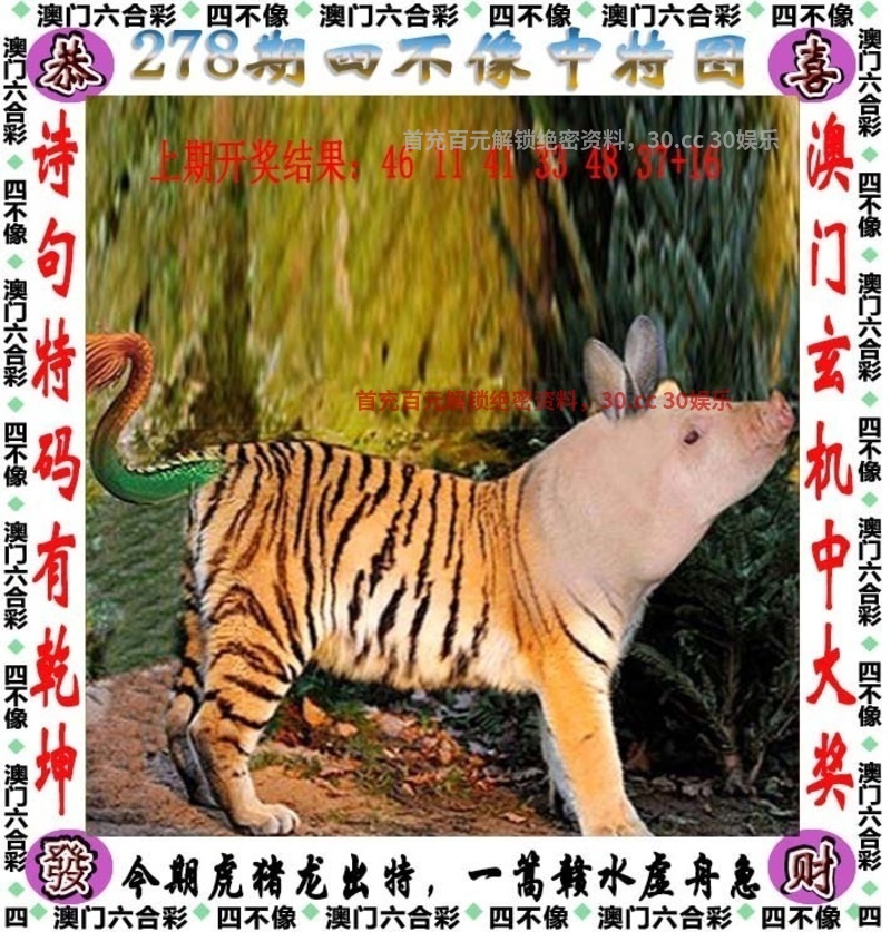 278期四字平特〖肥猪拱门〗开:虎28错 |